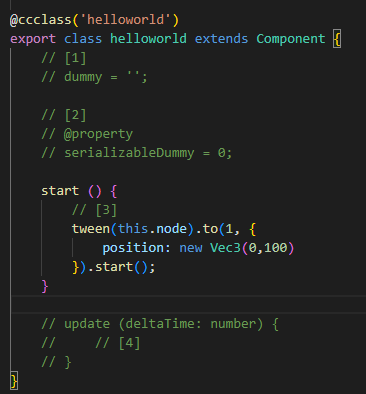 tween(this.node).to(1, {position: new Vec3(0,100) }).start(); -