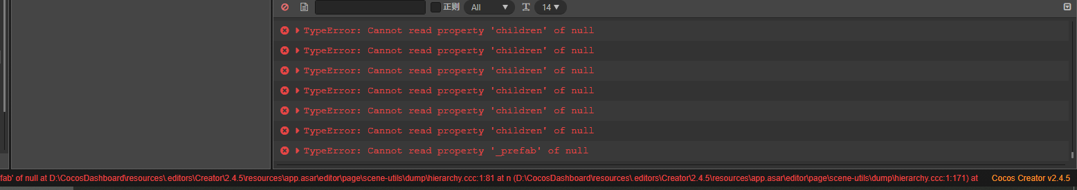 引擎中无法点击预制体、场景,并且报一大串错误!