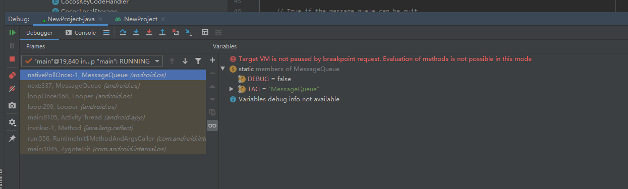 你那边使用 debug 模式,在前后台切换的时候,选择 pause,然后看下当前游戏线程运行到哪。