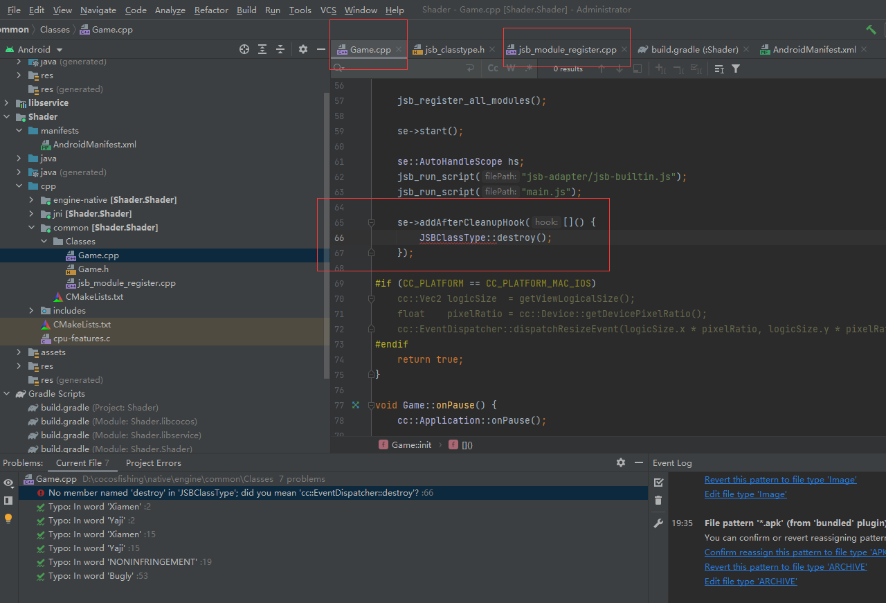 Game.cpp和 jsb_moudle_register.cpp 报错 -