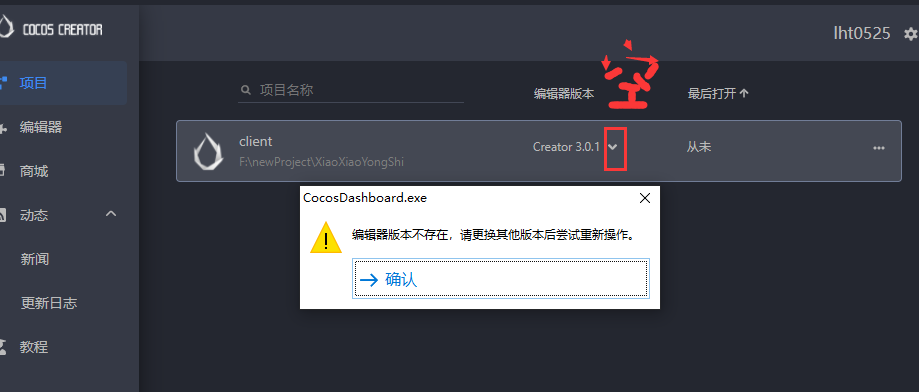 Dashboard 1.2.0 导入项目后下载对应编辑器版本,点击打开项目编辑器版本不存在