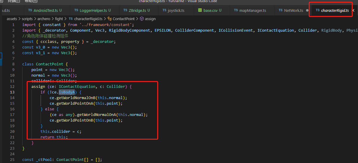 没解决,我改判断之后就可以跑出去了,改成if(!ce.isBodyA)
