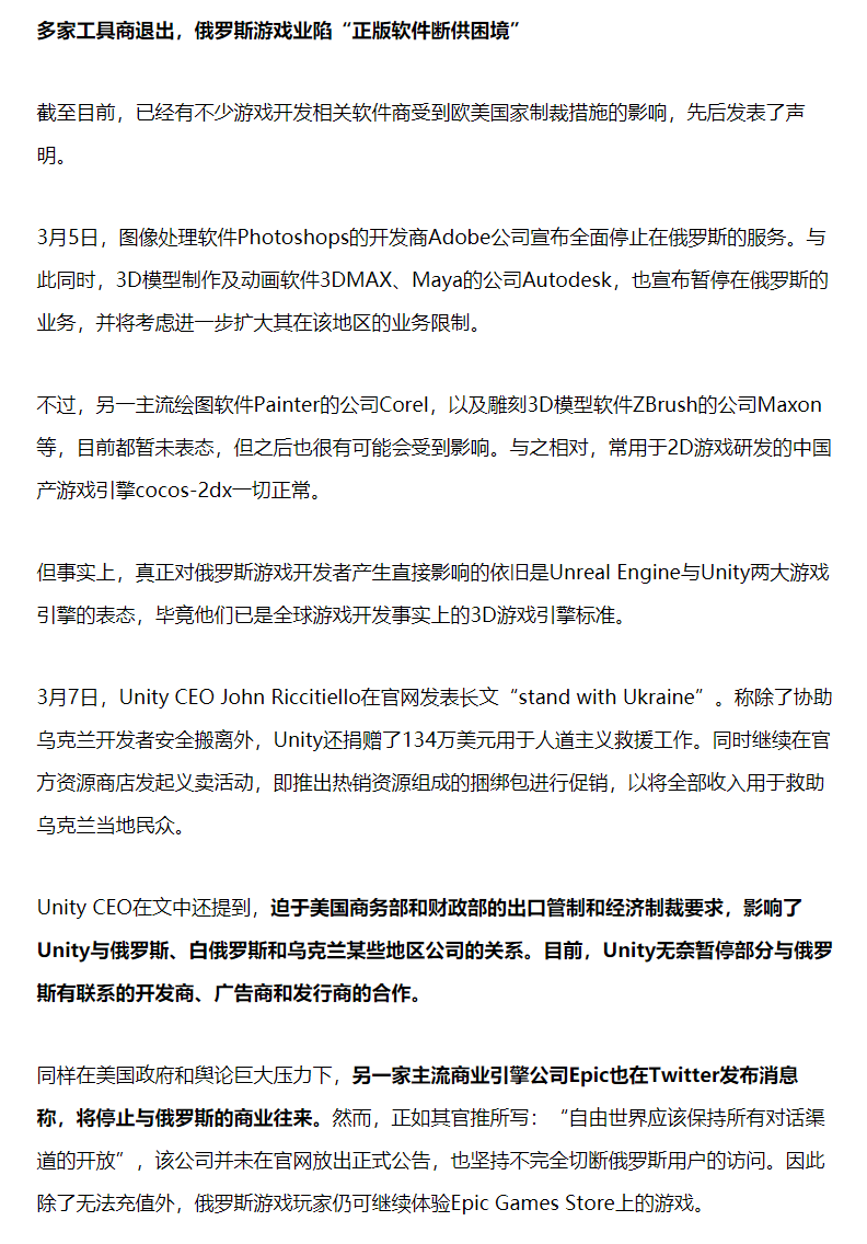 你看一下,如果毛子的unity开发者跟国内一样多,他们敢为了作秀,去制裁不给用么。给其他竞争对手机会,自废武功?