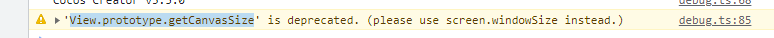 ‘View.prototype.getCanvasSize’ is deprecated. (please use screen.windowSize instead.)