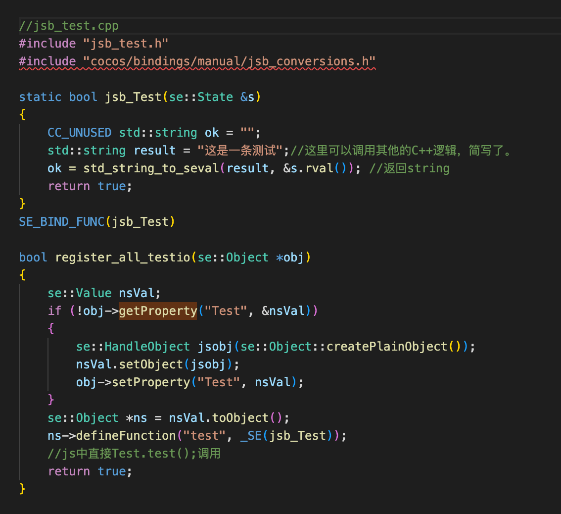 然后在engine-native/cocos/bindings/manual 添加了 jsb_test.h jsb_test.cpp