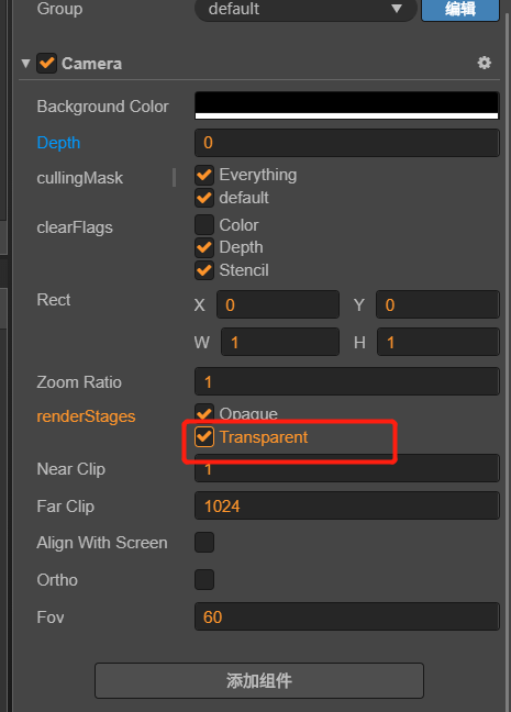 增添 3d 相机 -> camera 组件 -> renderStages -> 勾选 transparent;
