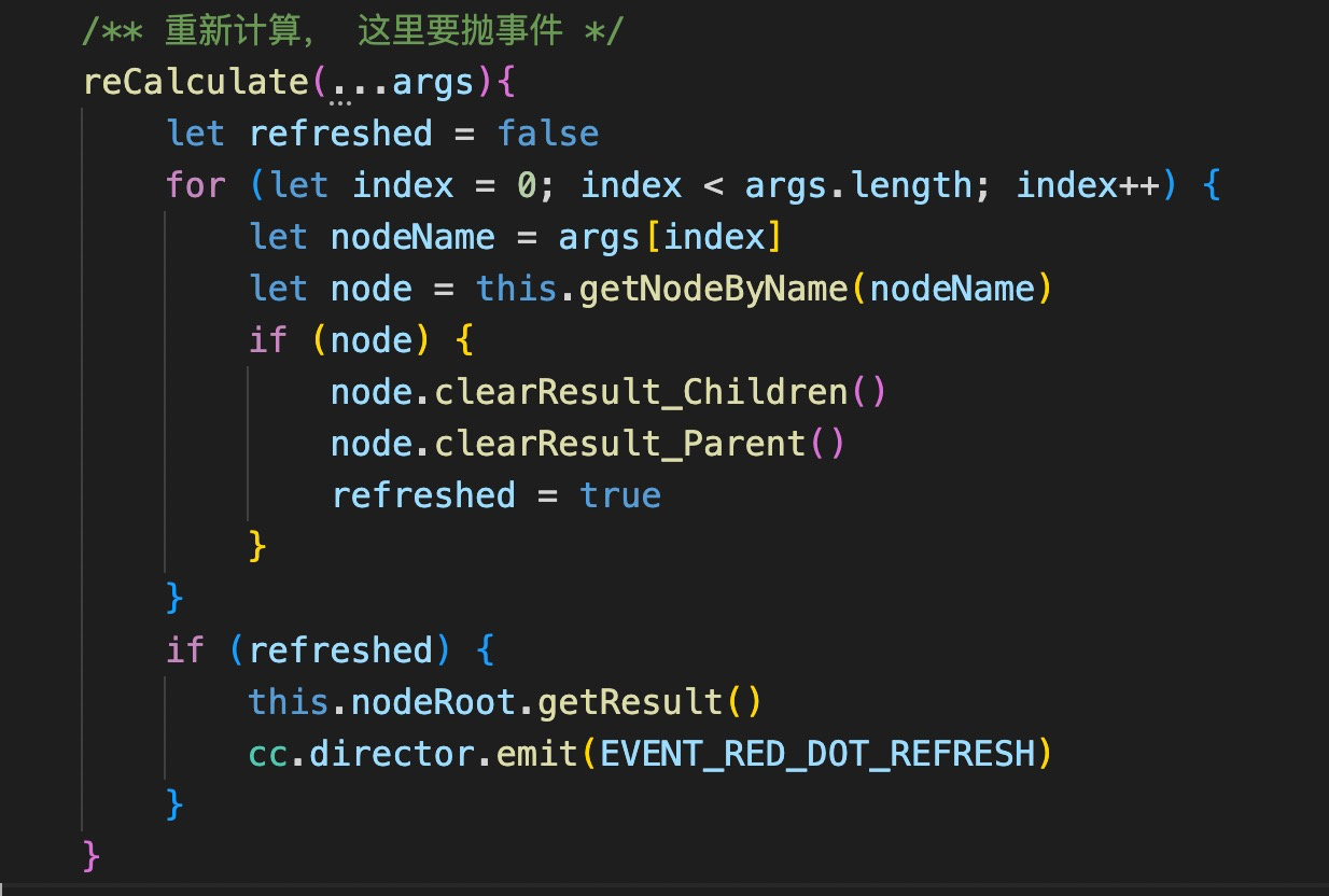 3、红点刷新通过调用 reCalculate 方法实现, 内部封装好事件了, 只有RedDotComponent这个组件能接收到