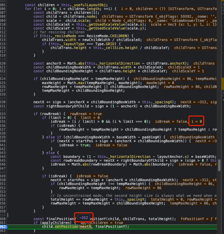 Layout接收到第一次_doLayout的事件是UITransform发送的childrenSiblingOrderChanged事件,此时计算第一个Child位置的值是312