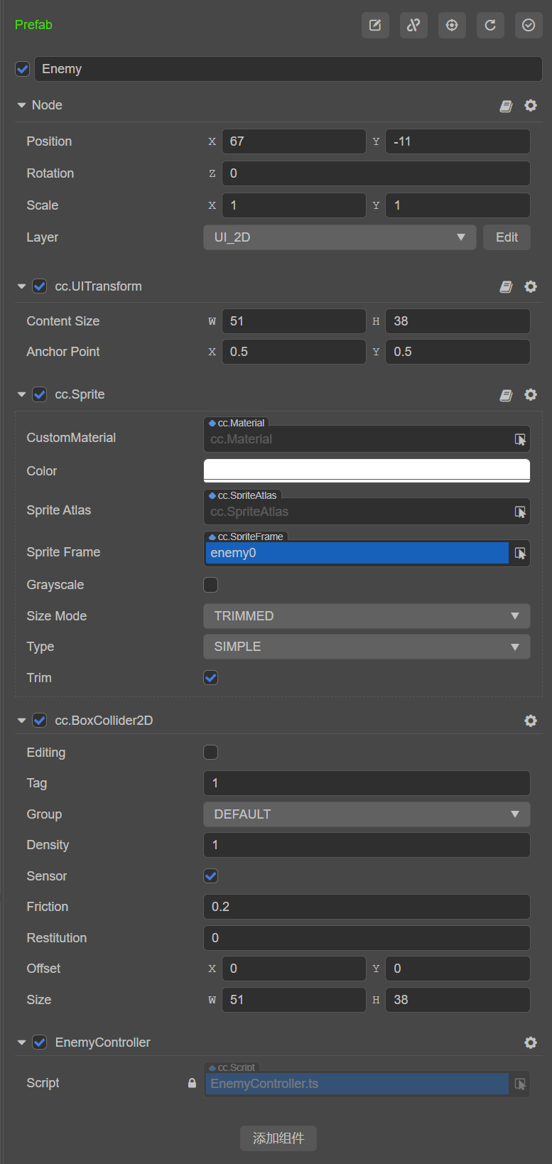 预设体属性: