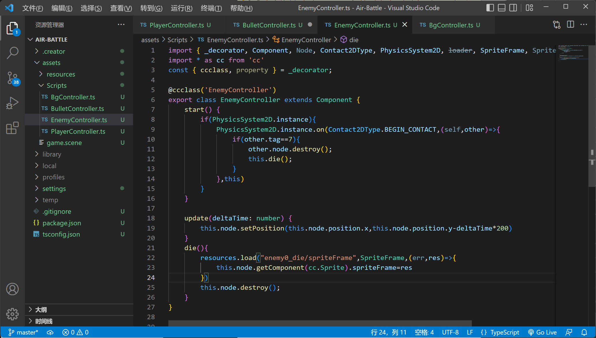 Enemy是我制作的一个预设体,该预设体在游戏中需要切换到死亡状态,所以我想加载资源,然后再挂载到预设体的精灵组件上,但是却提示get不到精灵组件,麻烦大佬看看是出了什么问题,在下感激不尽!