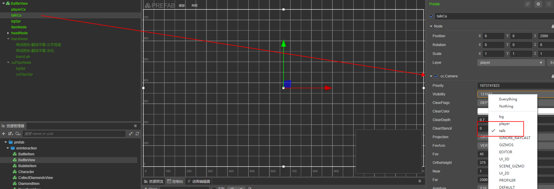 一共有2个摄像机,my层节点一直在my的摄像机下,可以看得到,就是点击不了,有解决方案吗