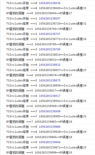 不好意思,我里面有很多测试代码没删除,脑子都迷糊了,今天重新测试了一下,100万单位查找 ts includes 函数 26毫秒比较稳定,自己写的BM查找算法 28毫秒浮动,他们两个运行效率差不多,误差不超过5毫米。我可能写的不够好,应该哪里多了不必要的代码