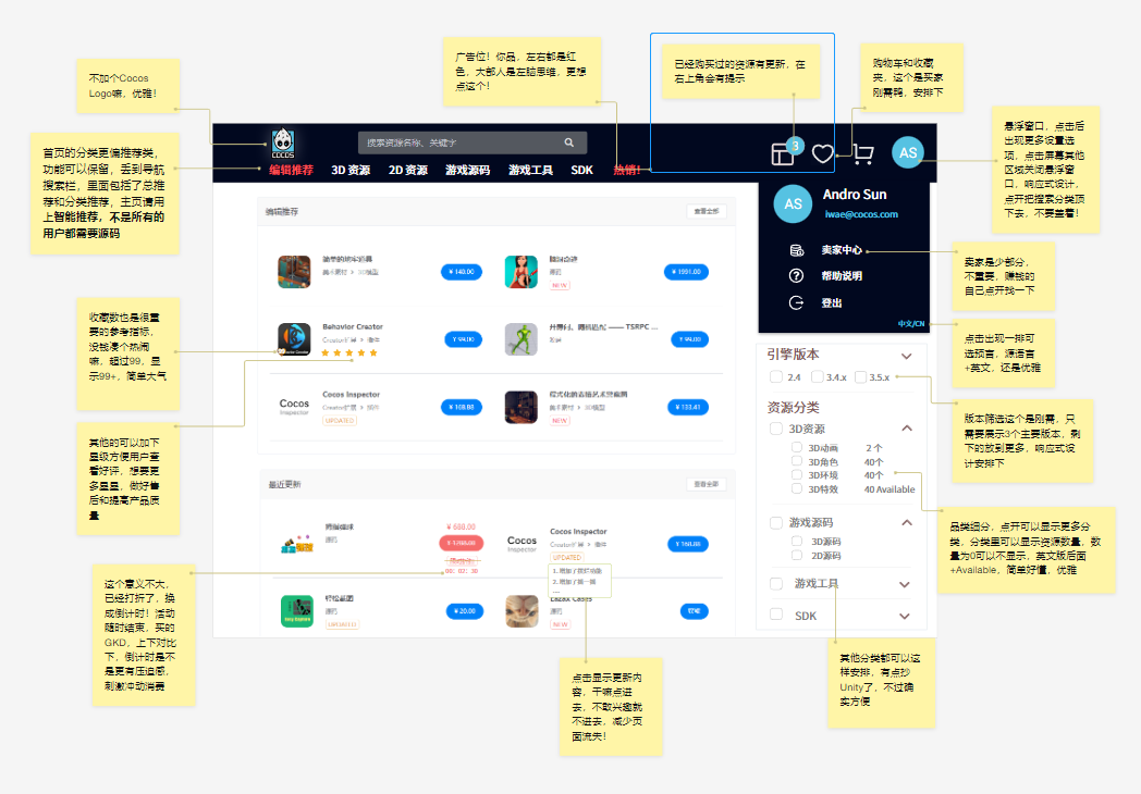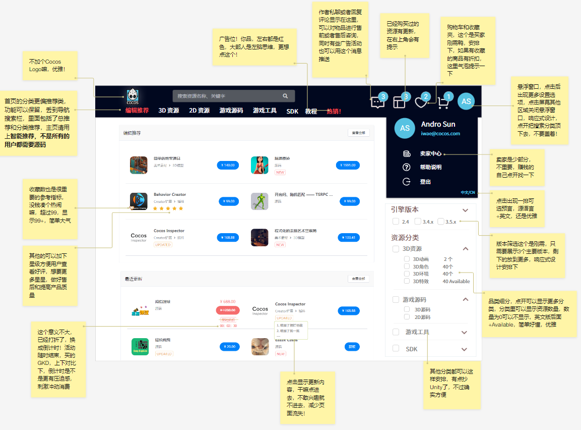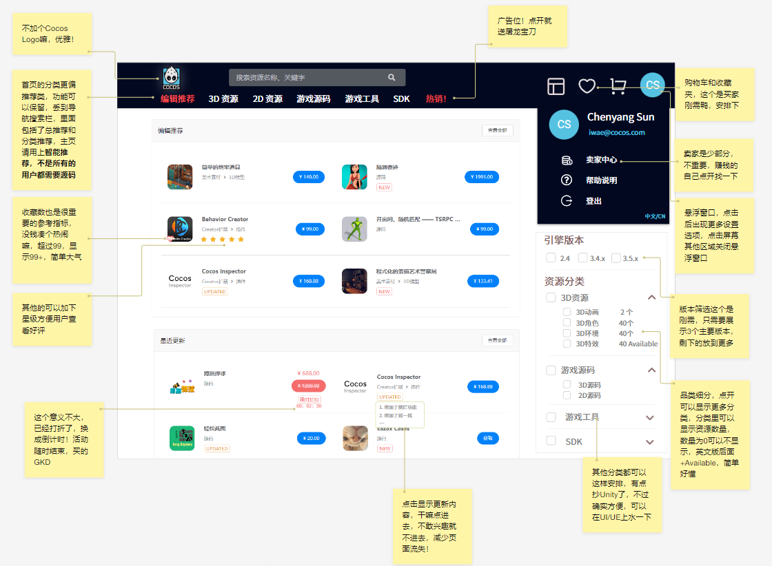 站在个人角度。Cocos商店目前对买家的用户体验还有提升的空间。。商店需求的优先级应该满足买家的使用习惯和刚需。。