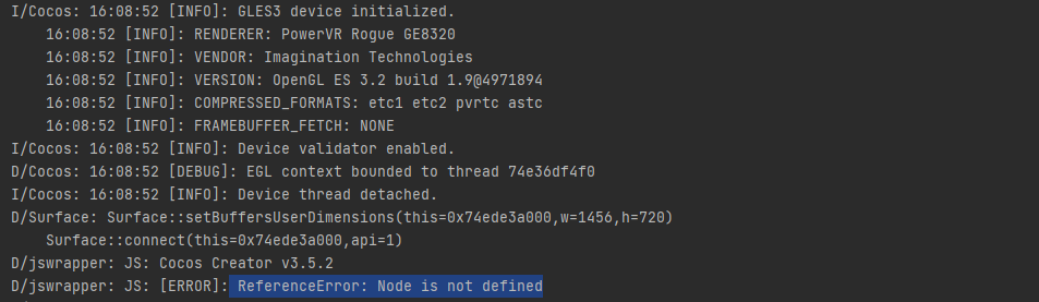 升级3.5.2后,打包手机运行直接黑屏,报错打印Node is not defined