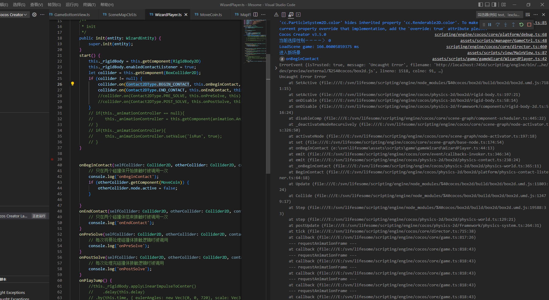 今天我在进行2D物理引擎测试时报错。报错细节如下。