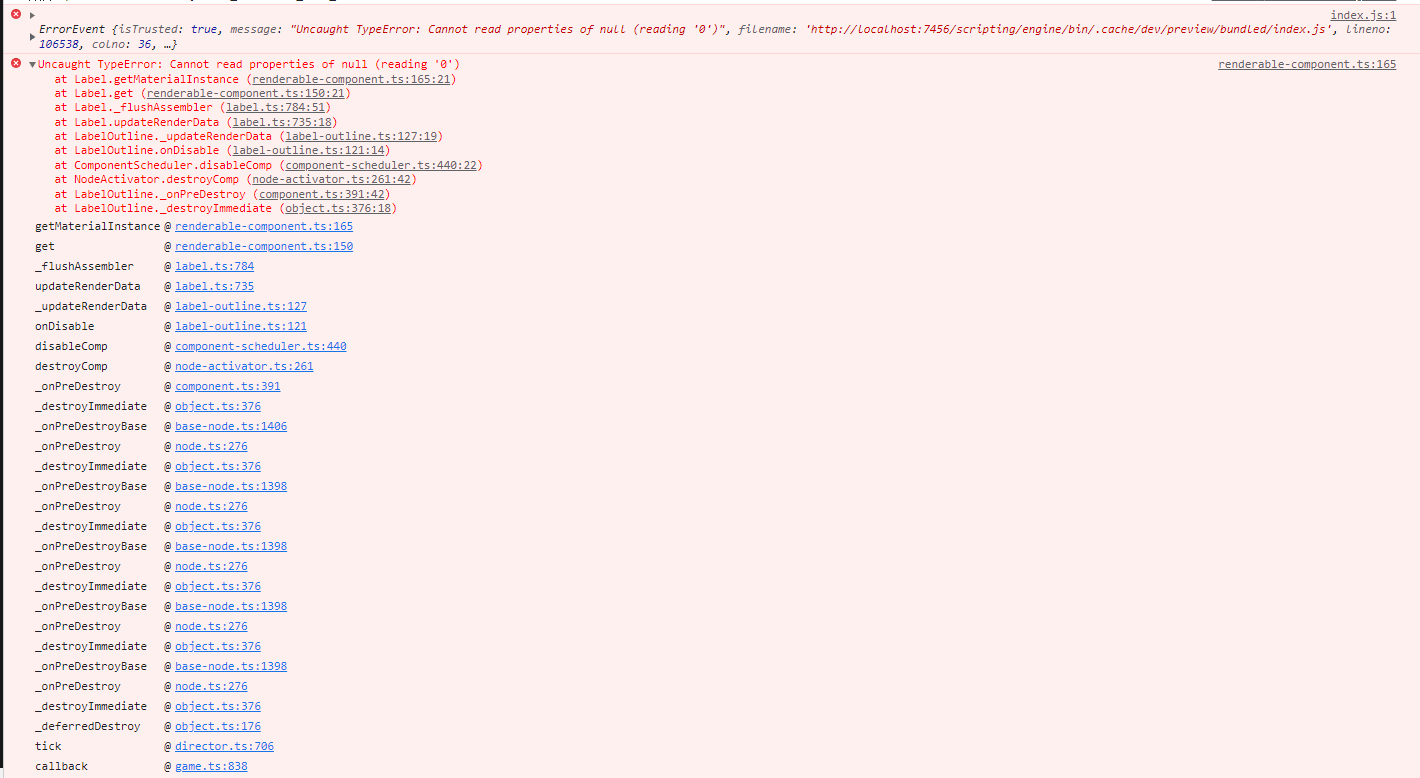 3.5.1的项目,做的有些大。有一个界面上面有不少带 outLine的Label,在开启关闭这个界面的时候,大概40%的概率会报这个错误。我看堆栈信息
