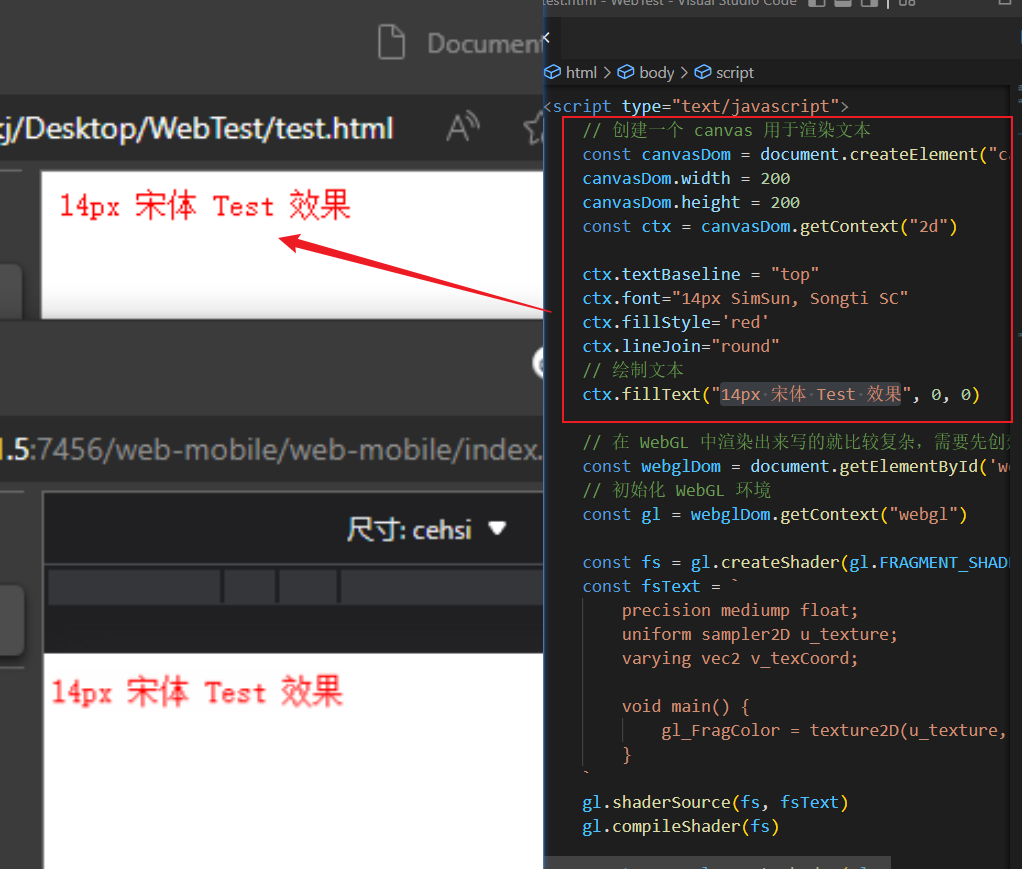 图中上面是用webgl绘制文字的效果,下面是cocos在web端的显示效果。(图片放大了220%)