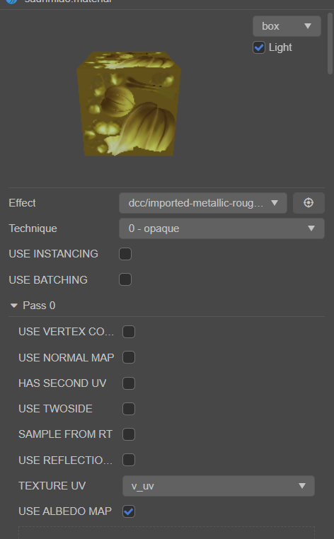 没有找到USE LIGHTMAP 选项,根据文档要求需要勾选这个,没地方勾;