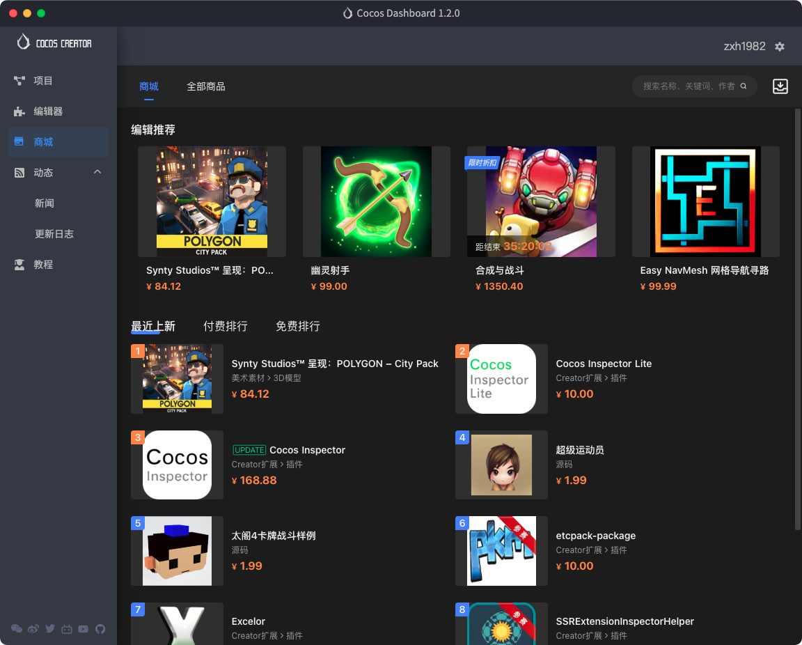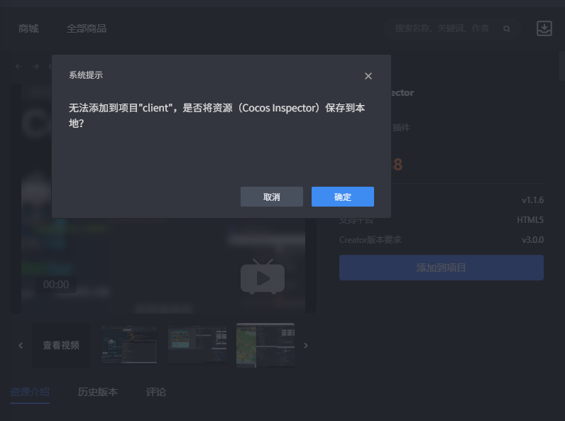 好久没看 Cocos Creator 的拓展里面的商城了, 今天打开想下载点东西,
