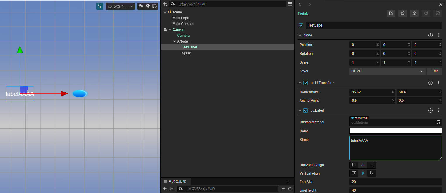 测试专案内. 有两个 Prefab 开启都无法编辑. 另外在场景中对 Prefab 做修改比如调整大小, 设定文字内容都无做用.