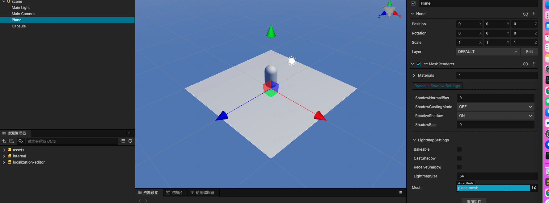 检查一下 Plane 的 shadow setting 里面有没有开启 receive shadow,还有你的物体是在什么位置,你截图中的投影平面是 Y = 1 平面,然后高度是 0