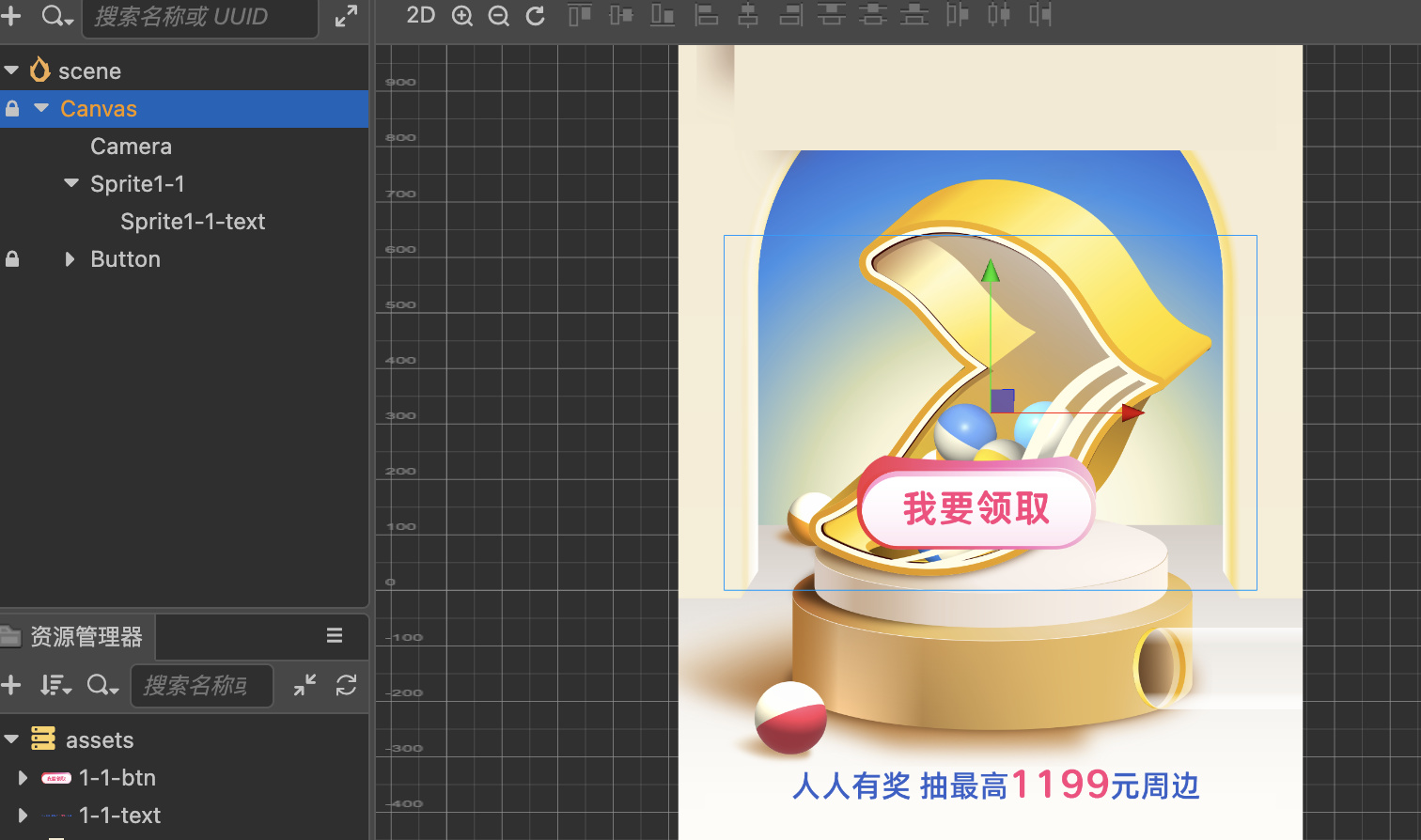 按钮不能点击,是因为按钮的坐标在 Canvas 画布之外,你移到 Canvas 里面试试?