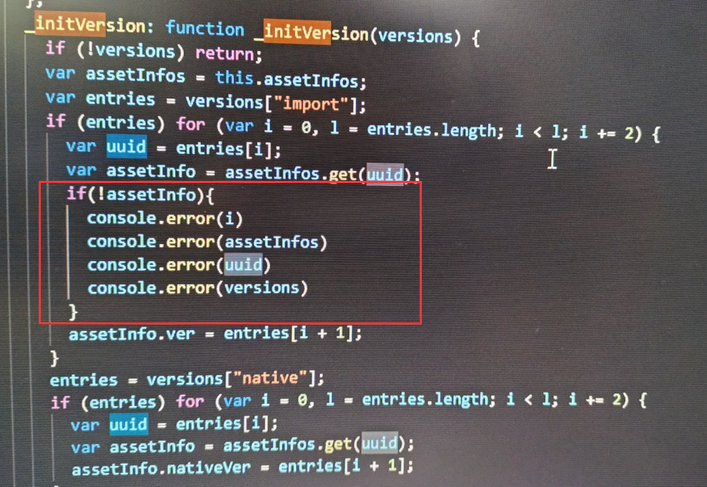 经过排查出错位置就是因为assetInfos里找不到指定uuid的资源 且发现versions[“import”] 的长度 大于assetInfos的size