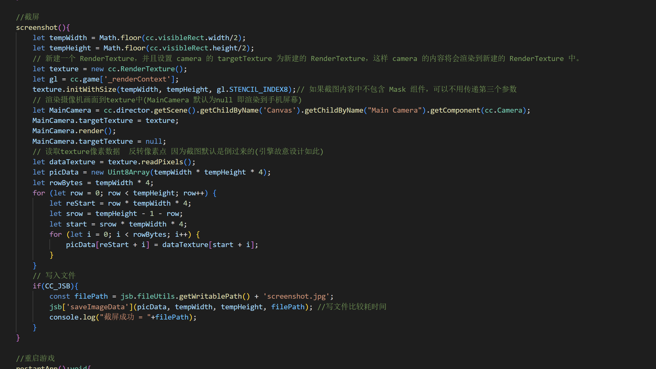 // 读取texture像素数据 反转像素点 因为截图默认是倒过来的(引擎故意设计如此)