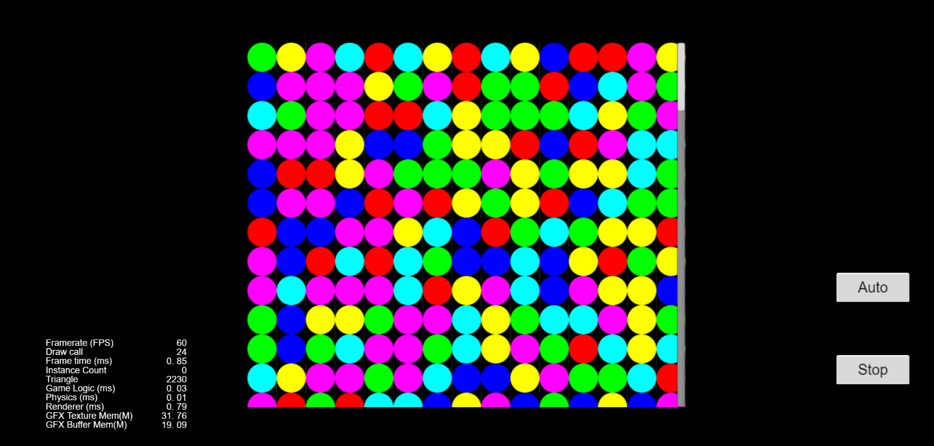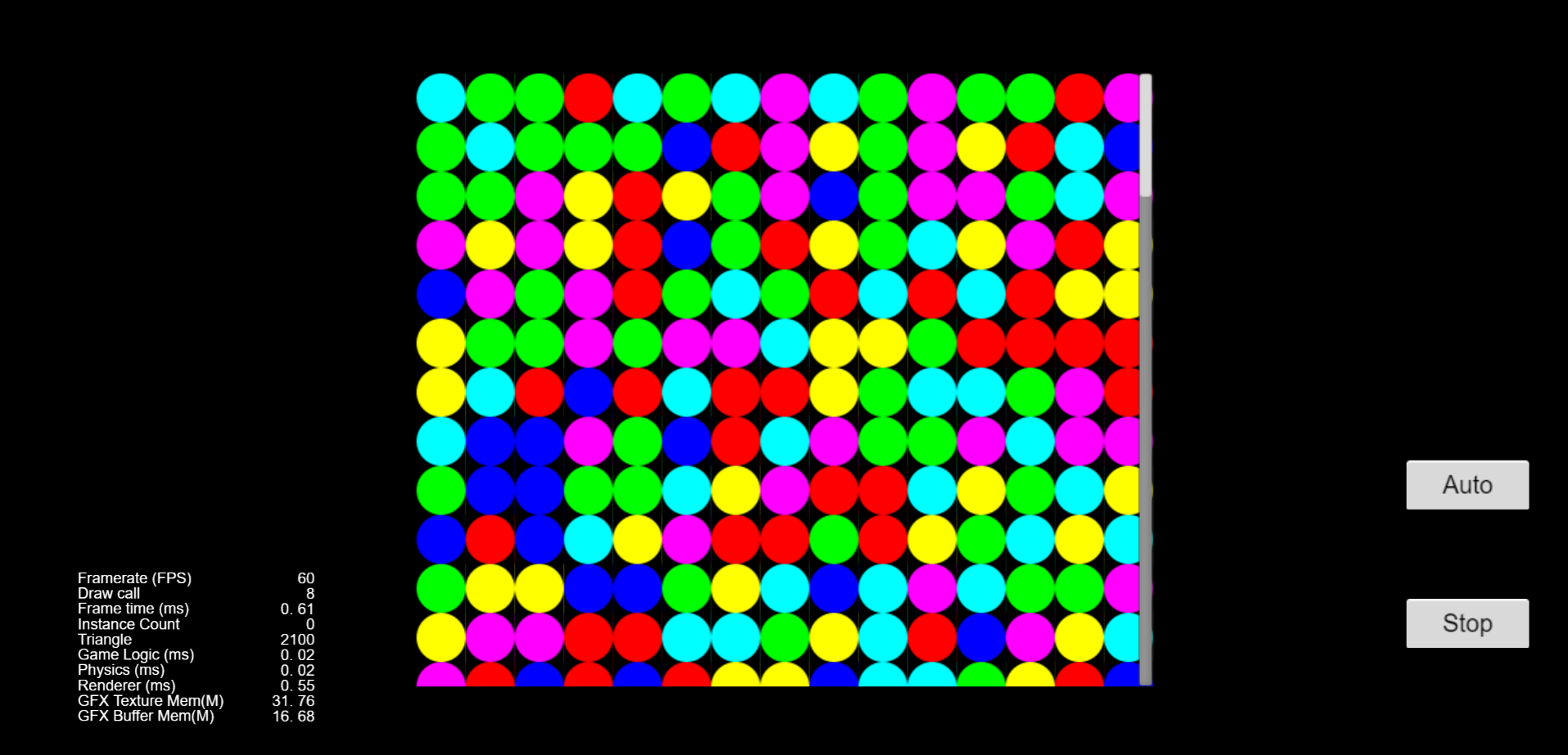 目前设置了两个ScrollView,一个ScrollView里面放了圆形的prefab,另一个放了正方形的prefab