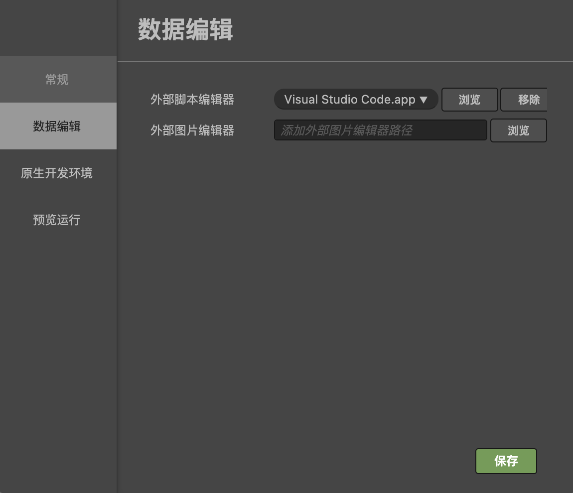 左上角偏好设置 数据编辑 外部脚本编辑器