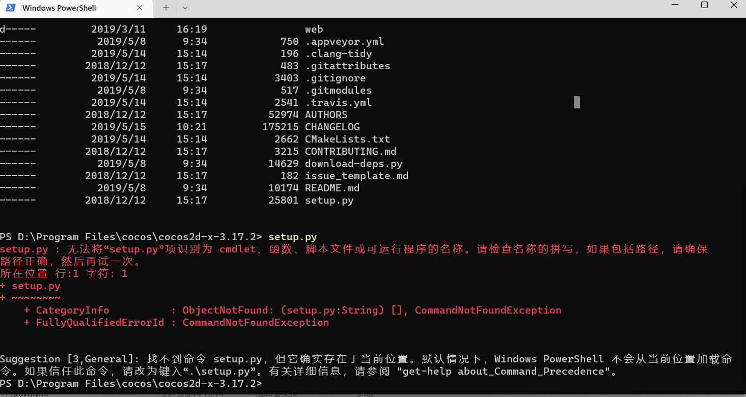 + CategoryInfo : ObjectNotFound: (setup.py:String) [], CommandNotFoundException + FullyQualifiedErrorId : CommandNotFoundException。