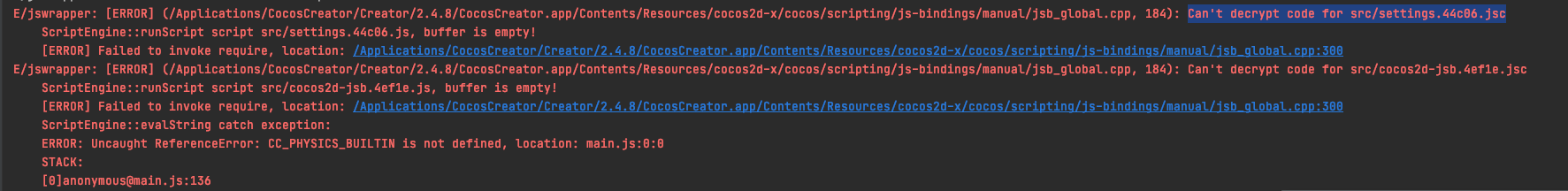 看了下和classes文件夹内AppDelegate.cpp里 jsb_set_xxtea_key(“b0492942-4cb6-43”); 里面的key和构建面板的是一样的
