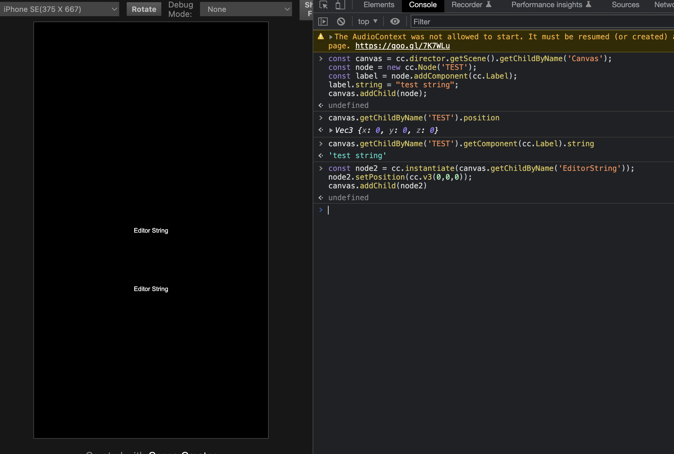 在项目里发现这个问题,于是新建了一个测试场景测试,如图所示 下面的 “editor string”是在编辑器里添加的Label。动态创建了一个 “test string” 的结点不起作用。但是直接用现成节点实例化可以显示出来。