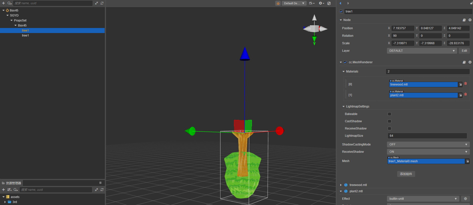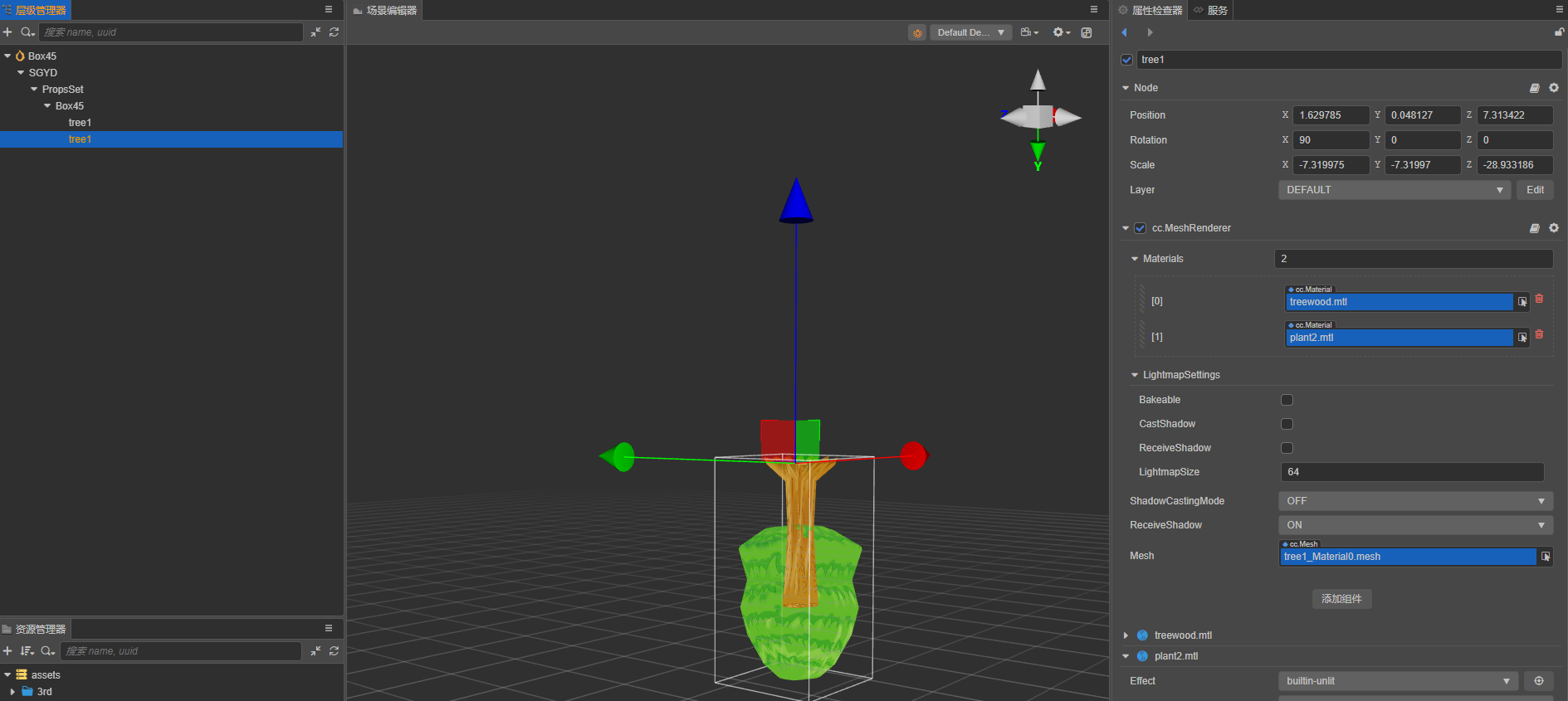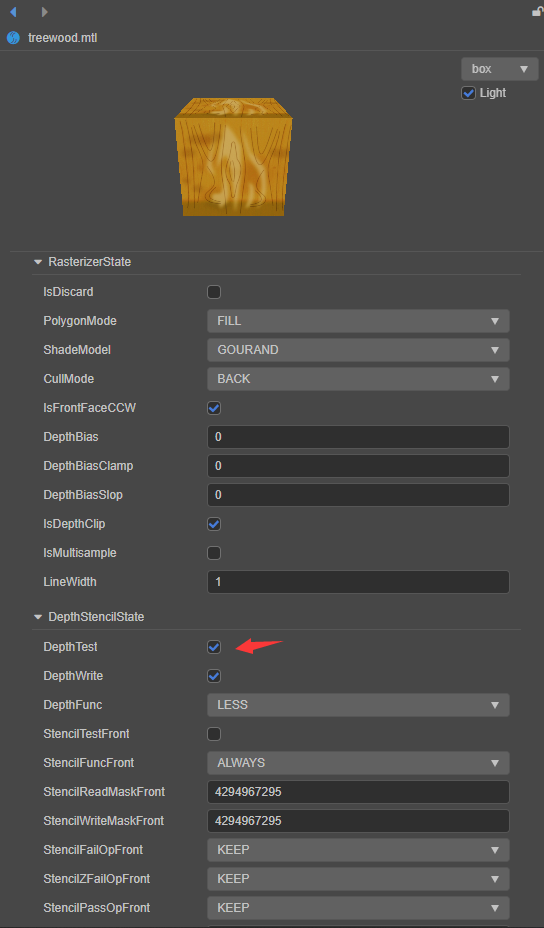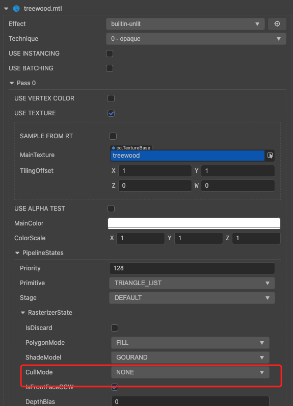 是否有开启深度写入? treewood.mtl 用的也是builtin-unlit?
