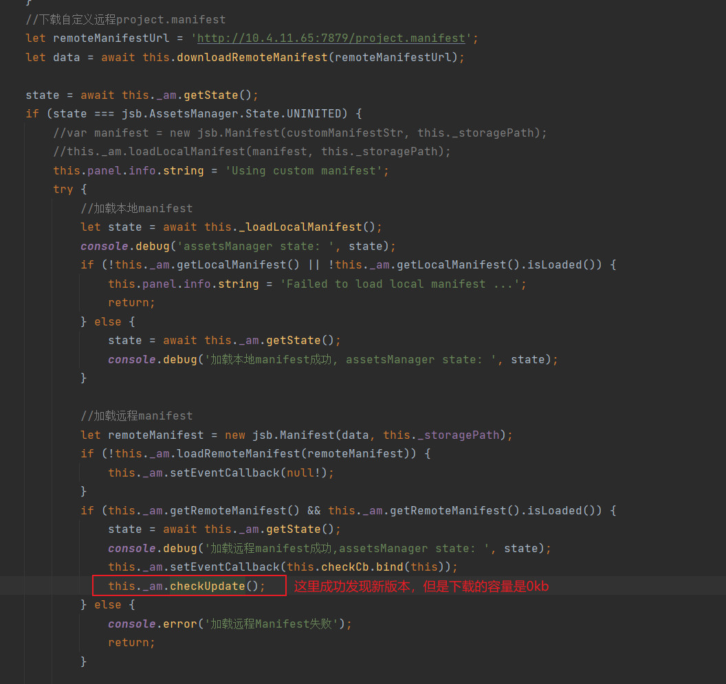 ,AssetsManager.loadRemoteManifest() 函数会返回false