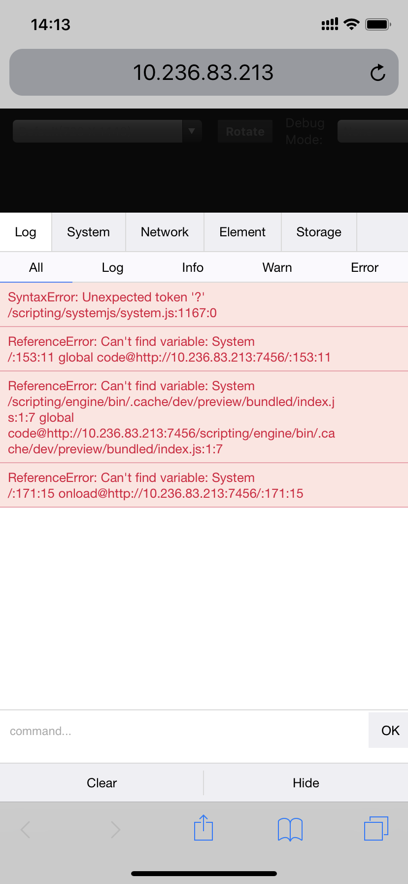 空项目也报错, 而且是引擎内的日志窗口报错。 手机上的报错如图