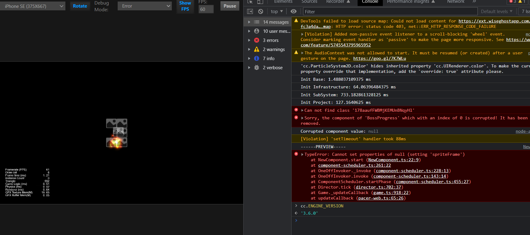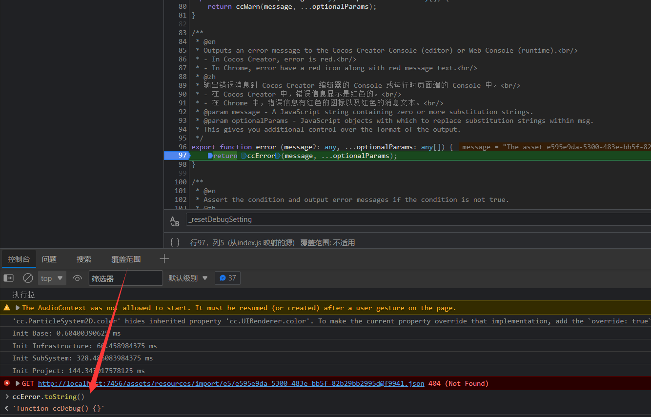 就是这个Debug Mode开启的时候,浏览器预览的时候,游戏画面也会输出错误信息,会档东西,所以我就给关了,结果关了控制台里也不输出了…