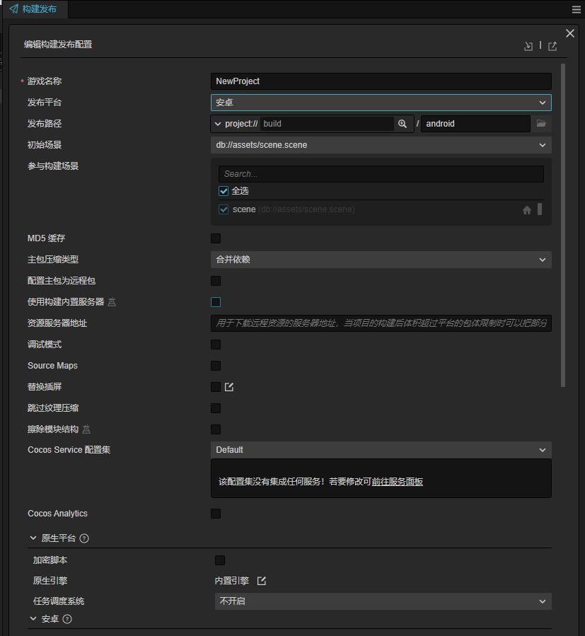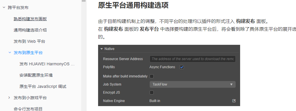 还有就是文档上native构建选项和实际上差距也太大了吧