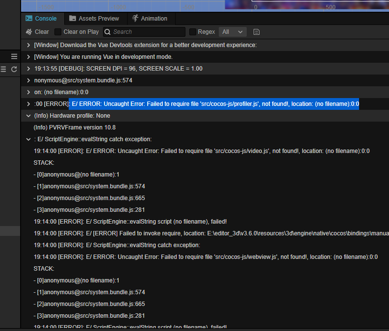 : E/ ERROR: Uncaught Error: Failed to require file ‘src/cocos-js/profiler.js’, not found!, location: (no filename):0:0
