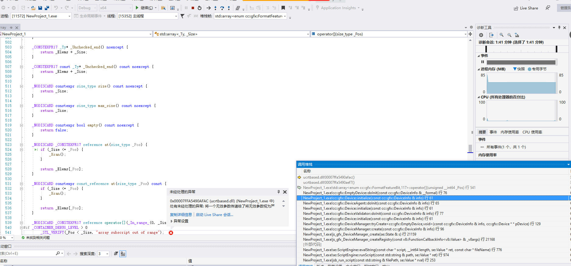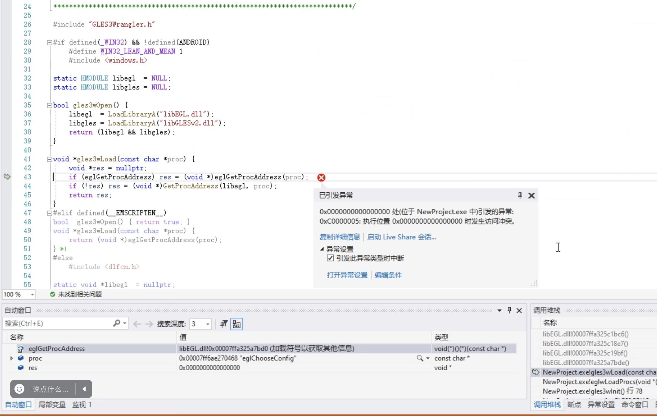 在vs2019运行时crash到egl库中