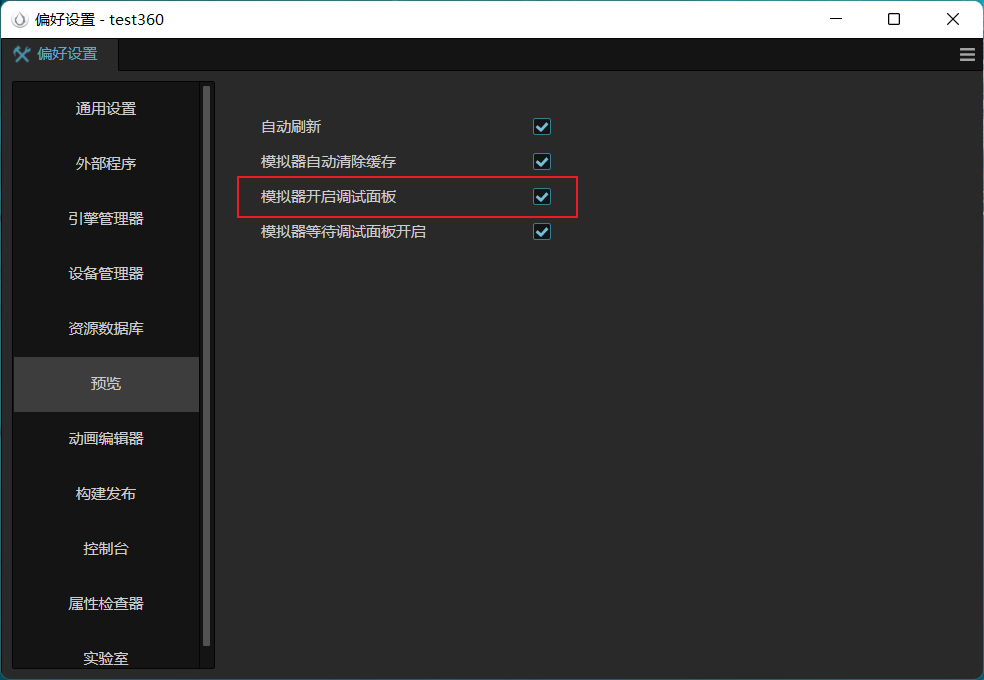 那也得让人看到模拟器里的游戏画面呢;不可能开启了调试面板,游戏画面就缩小不见了呀