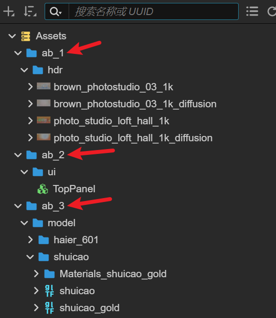 我的assetbundle名字分别是文件夹名: