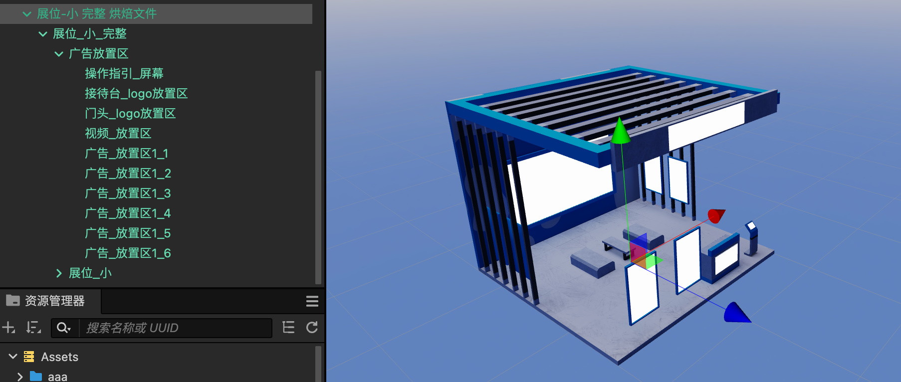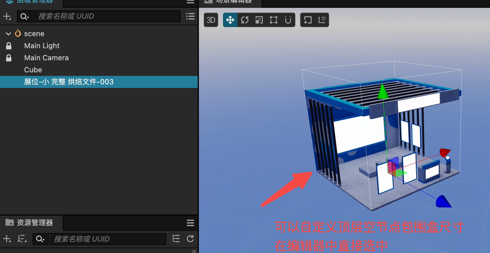 原始:(顶层是空节点,没包围盒,无法在编辑器中直接选中)