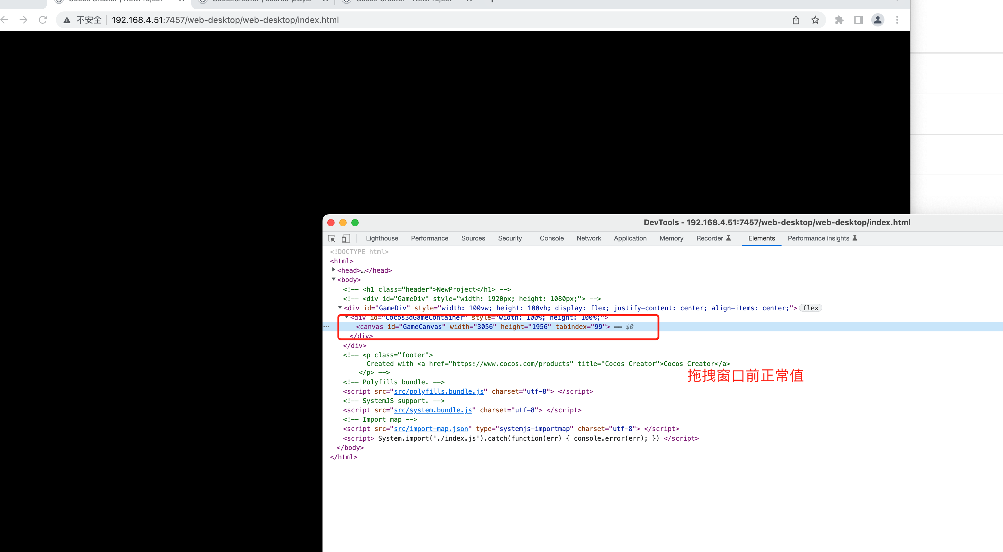 首次运行OK 但是拖拽当前网页后必须重新加载 拖拽窗口发现canvas节点并没有重新获取新窗口大小还是首次加载大小