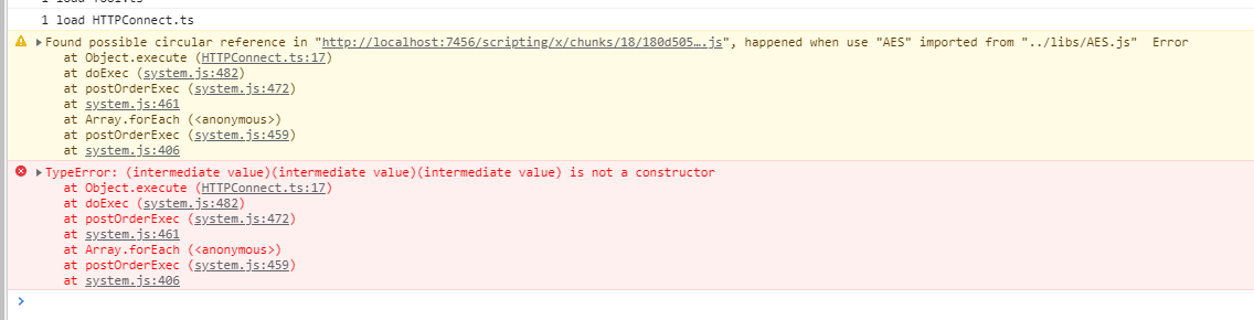 加了之后是上面那个报错。那个报错意思是“不应该在 CJS 模块里有 export 语句”。因此,你可以试着改那个 AES.js 后缀为 .mjs 或者在 libs/ 目录下面加个 package.json,内容为 { "type": "module" }