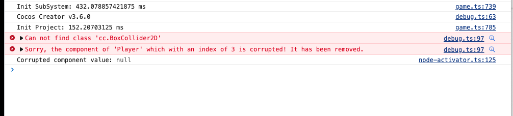 给一个节点添加BoxCollider2D组件之后运行游戏会报错