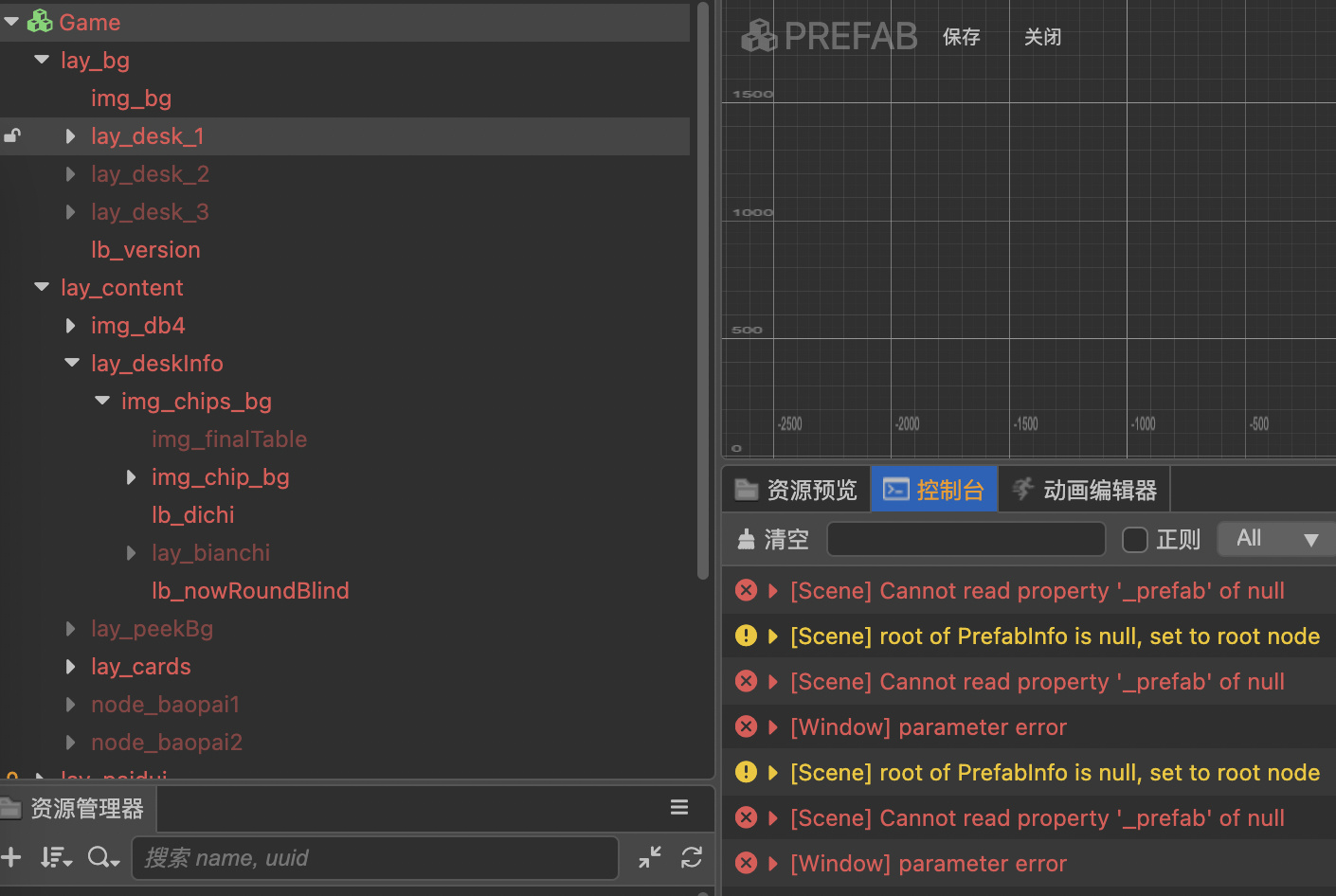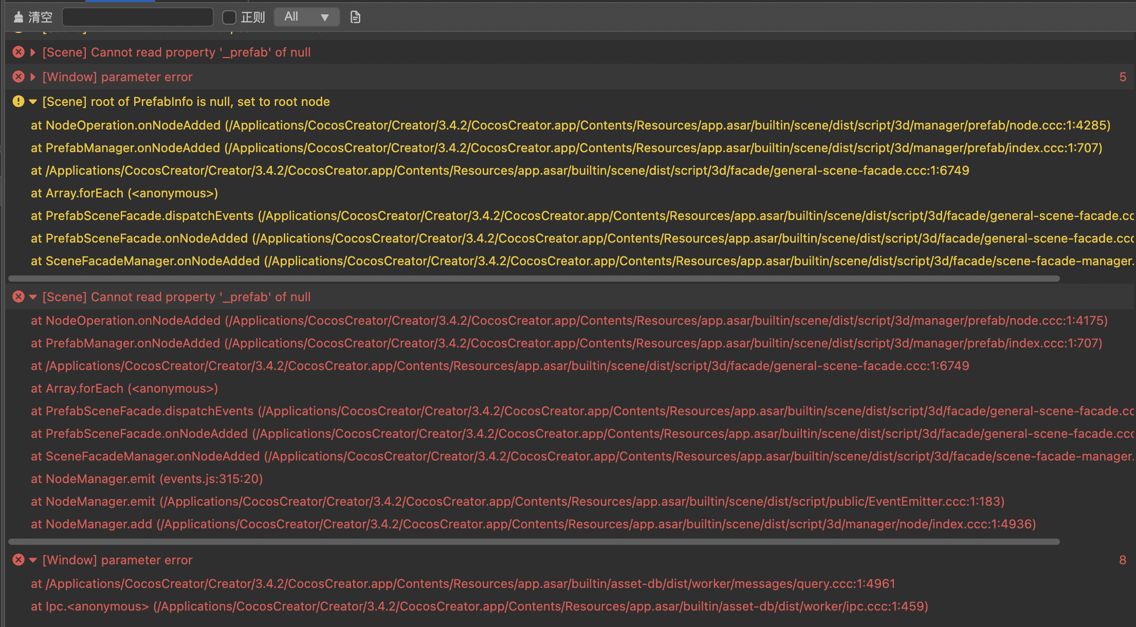 一旦出现 [Window] parameter error,这个情况,其他所有的prefab打开都是爆红的状态,解决办法,只有重启编辑器才好