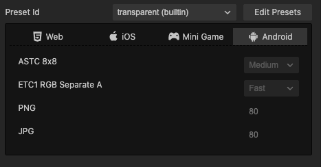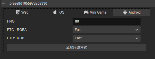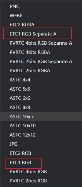重现方式:使用引擎压缩纹理,选择etc1方式