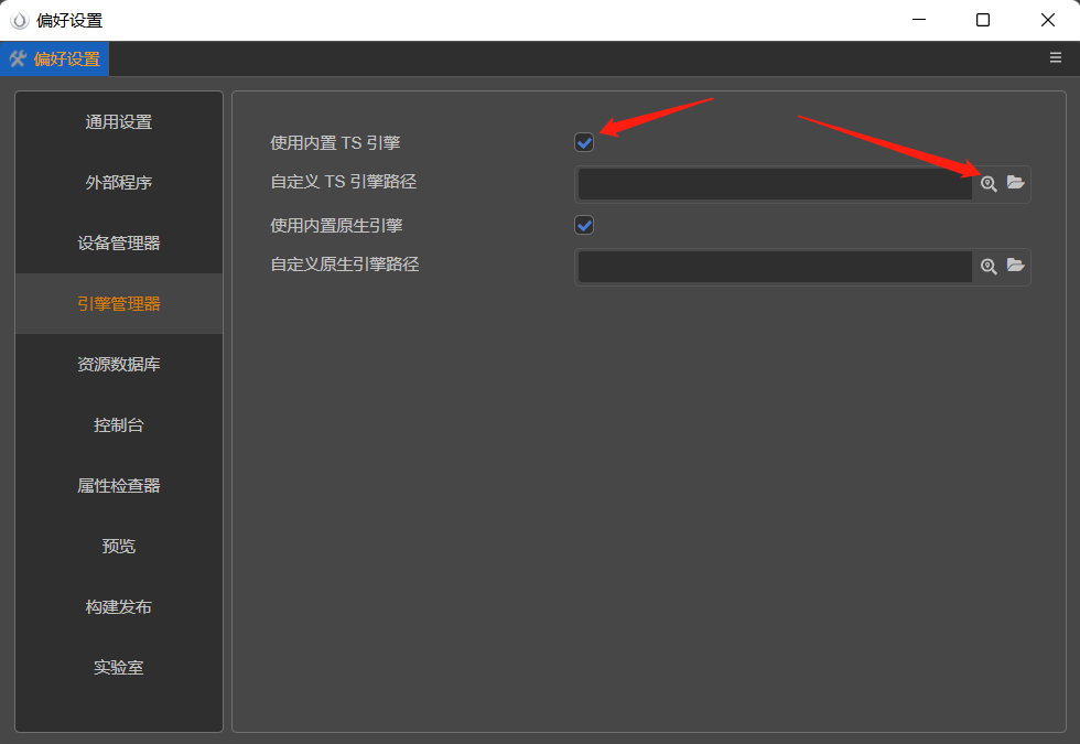 选择自定义TS引擎路径之后重启cocos编译器。选择的内容没有被保存,恢复到了初始(如上图)的默认设置状态。相当于无法进行自定义。