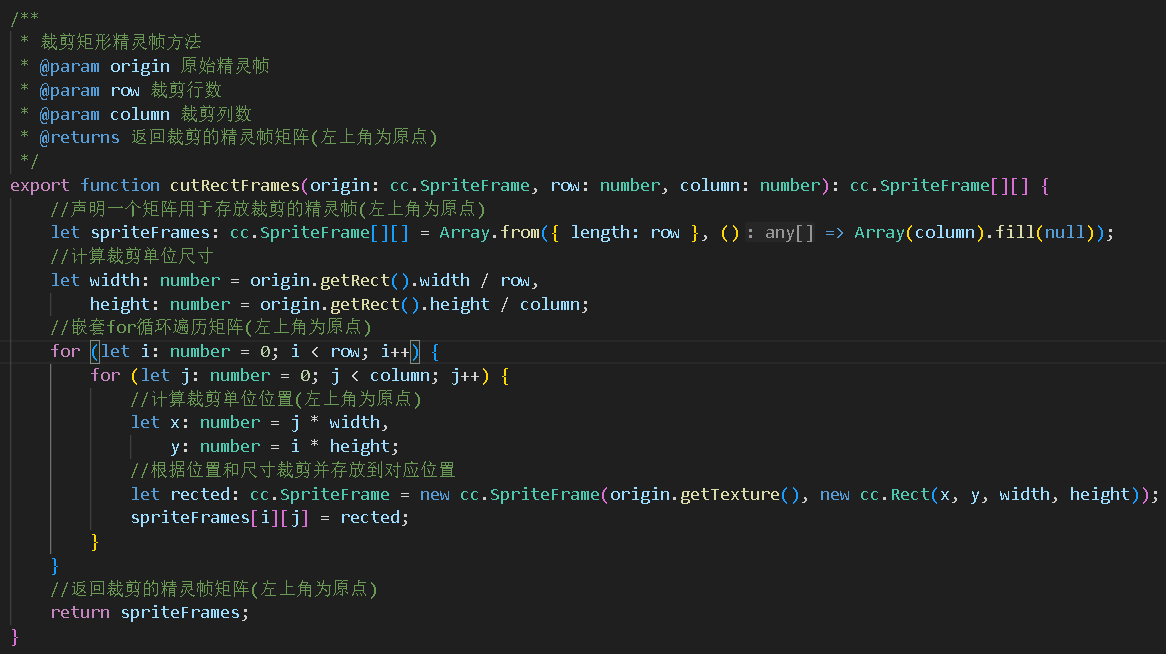 我之前做代码方式创建AnimationClip的时候也有写过一个 不过后面没用上 我是用二维数组去存裁剪好的矩形精灵帧 这样方便肉眼定位(小部分需求用到) :rofl: